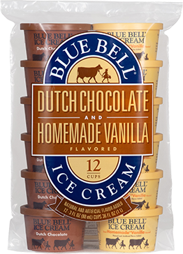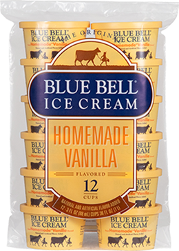 Select four (4) Blue Bell Ice Cream 12-pak cups and Add to Cart. One order contains a total of 48 individual 3-ounce cups. Ice Cream Cups must be ordered in multiples of four and cannot be mixed with other product categories.